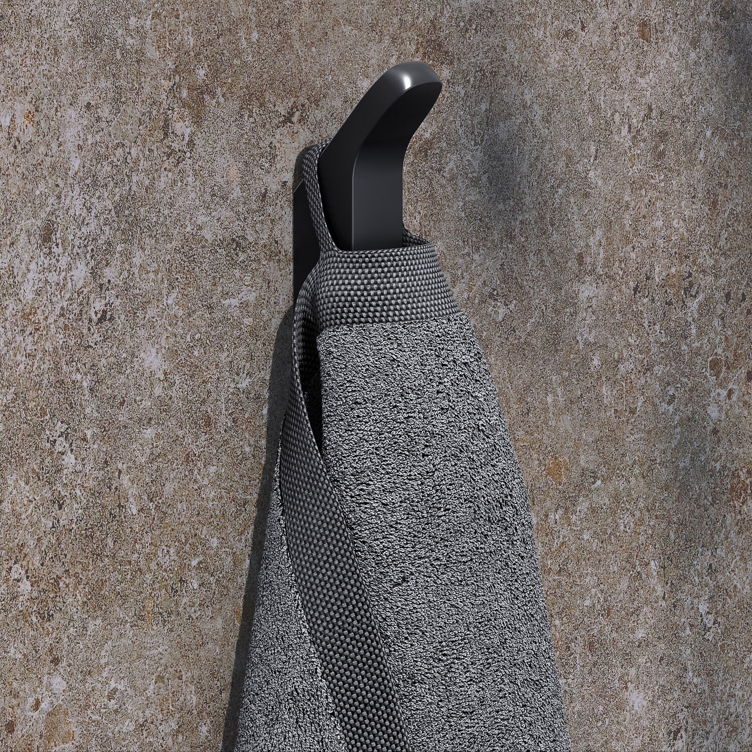 Trotz kleiner Fläche ist bei der Klebemontage des Handtuchhakens kein zusätzliches Element oder eine Rosette erforderlich. Der Handtuchring ist schwenkbar und so konstruiert, dass das Handtuch in luftiger Entfernung zur Wand trocknen kann. Der Badetuchhalter ist in zwei Längen erhältlich, sodass auch mehrere Handtücher auf ihm Platz finden können. Die ein- oder zweiarmigen Handtuchhalter sind starr und ebenfalls in zwei Längen zu haben.