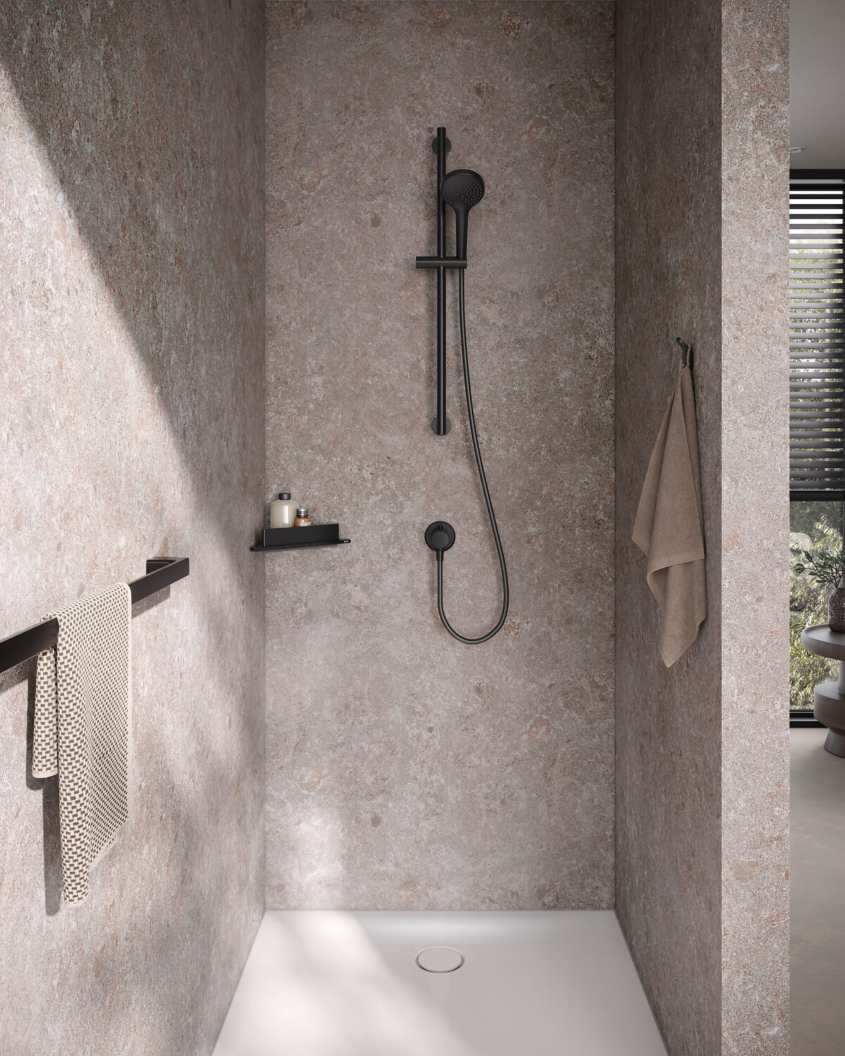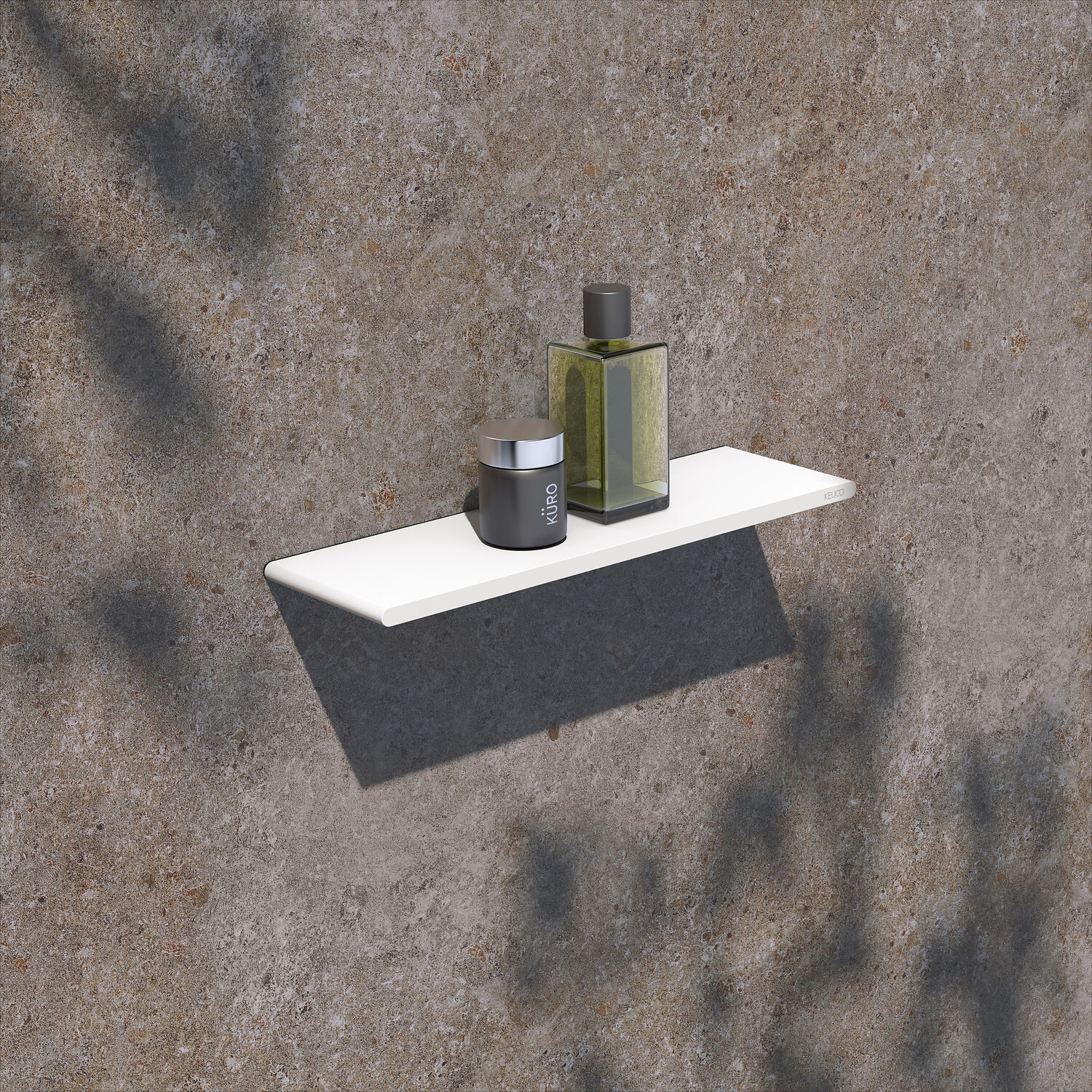Für den Duschbereich ist ein rechteckiges Modell und eine Eckversion der Duschablage verfügbar – jeweils ohne oder mit Glasabzieher in Weiß matt oder Schwarz matt. Die Duschablage ist aus einem Stück Aluminium gefertigt. Das solide Material trotzt dem Wasser in der Dusche und büßt auch über eine lange Nutzung nichts ihrer perfekten Optik ein. Die klebbare Anbindung ist unauffällig, passend zum Design der Duschablage.